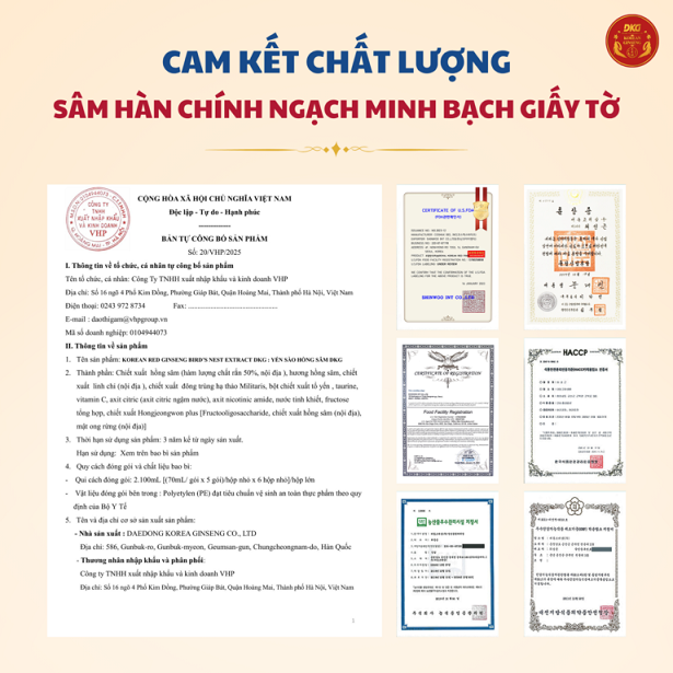 Chiết Xuất Hồng Sâm Yến Sào DKG Korea 30 túi x 70ml
